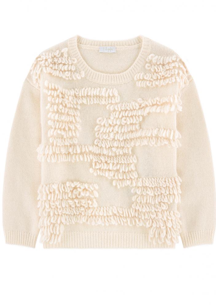 Ein Hammer Strickpullover - suuper weich, kratzt garantiert nicht, allerfeinste Merino-Wolle... cremefarben, der Clou sind der plastische 3D-Muster Ton-in-Ton auf der Vorderseite. Hinten in uni. Der Absolute Eyecatcher!