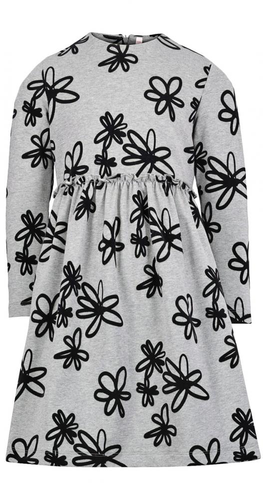 Wunderschönes Langsarmkleid aus elastischem Jersey, in leicht ausgestelltem Schnitt, Knöpfe im Nacken, runder Halsausschnitt. Der Eyecatcher sind die großen Blumen aus Samt-Flock, in 3D Optik... Ein Traum!