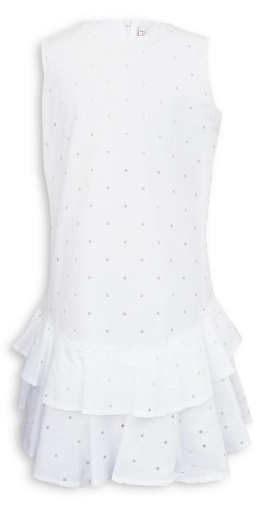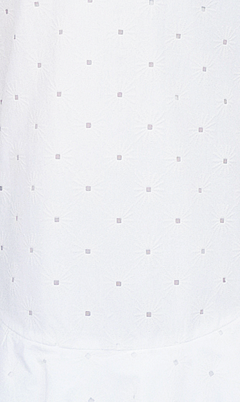 Traumhaftes Sommerkleid in reinweiss, aus feinstem Baumwoll-Batist, doppellagig gearbeitet. Die obere Lage ist aus durchbrochener Spitze gearbeitet, mit Blumen-Druck Ton-in-Ton. Mit leichtem Baumwoll-Futter blickdicht gearbeitet. Körpernat geschnitten, ab der Hüfte mit gerafftem doppeltem Volantrock. Ein Traum!