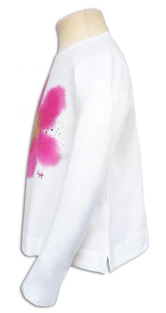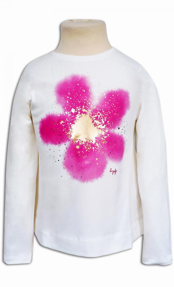 Wunderschönes elastisches Oberteil, in lockerer A-Linie, in off white/pink, wie es nur bei Il Gufo gibt... Vorne mit schönem Blumenprint, verziert mit Gold-Glitter... traumhaft zu dem Karo-Rock, aber auch zu jeder Jeans oder Röckchen...