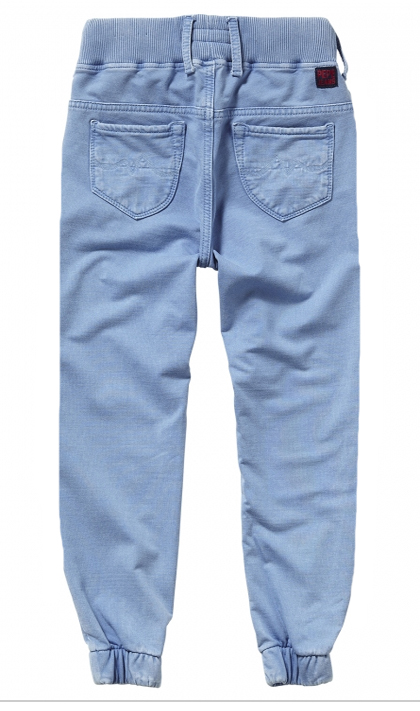Super lässige Jogg-Pants in butterweicher Jeansqualität in leicht marmorierter, blauer Waschung. Breits Gummibündchen, mit Kordel in der Taille.