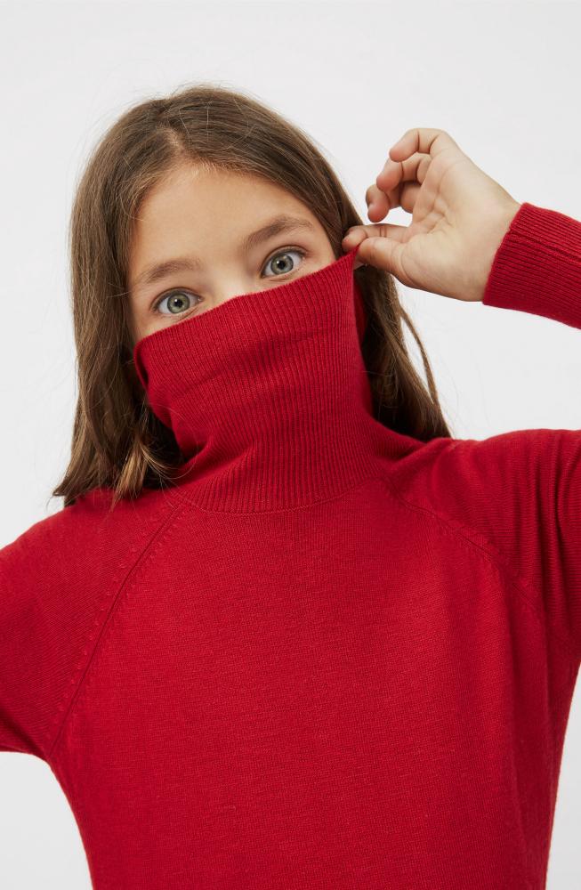 Toller suuuper weicher Rollkragen-Pullover in rot, tolles Viskose Stretch-Gewebe, hinten mit einer Naht, seitliche Schlitze, Logostickerei auf der Vorderseite. Ein super Teil, schlicht aber mit dem gewissen Etwas.