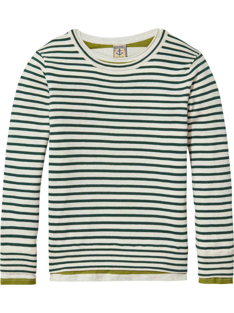 Dieses 2-in-1-Design aus einem langärmligen T-Shirt und einem Strickpullover aus weicher nicht kratzender Baumwollmischung mit gerippten Abschlüssen kann zusammen oder auch einzeln getragen werden.
